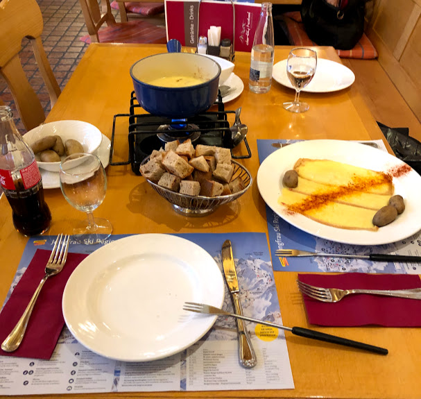 Comer en Suiza no es barato… pero tampoco es un disparate de caro como pensábamos. Las horas de sol el invierno son pocas, el atardecer es a eso de las 16:30, 17 hs., por lo que no queríamos perder tiempo en sentarnos a almorzar. Lo que nosotros hicimos fue comprarnos en alguna de las cadenas de supermercados (Coop o Migra, hay por todos lados) pan, queso, chocolate y jugo, y con eso marchábamos bien para los almuerzos, íbamos comiéndolo en el auto. Luego ni bien se ponía la noche íbamos a cenar como se debe je.