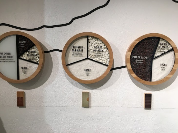 Luego el recorrido sigue con la historia de Cailler, que resumimos bastante en la puesta a punto del contexto, para luego pasar a una sala donde se explica la materia prima que se utiliza, se pueden escuchar testimonios de trabajadores de diferentes lugares del mundo y también oler, tocar y probar los productos.