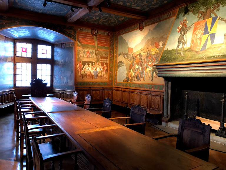 El castillo de Gruyères es uno de los más imponentes de Suiza y corona el pueblo, en lo alto de una pequeña colina. Se puede visitar por unos 12 CHF, y el horario es de 9 a 18 de abril a octubre, y 10 a 17 de noviembre a marzo. Si vistan otros museos del pueblo, pueden sacar tickets combinados. La visita dura aproximadamente una hora. Aquí les dejo la web oficial: https://www.chateau-Gruyères.ch/en