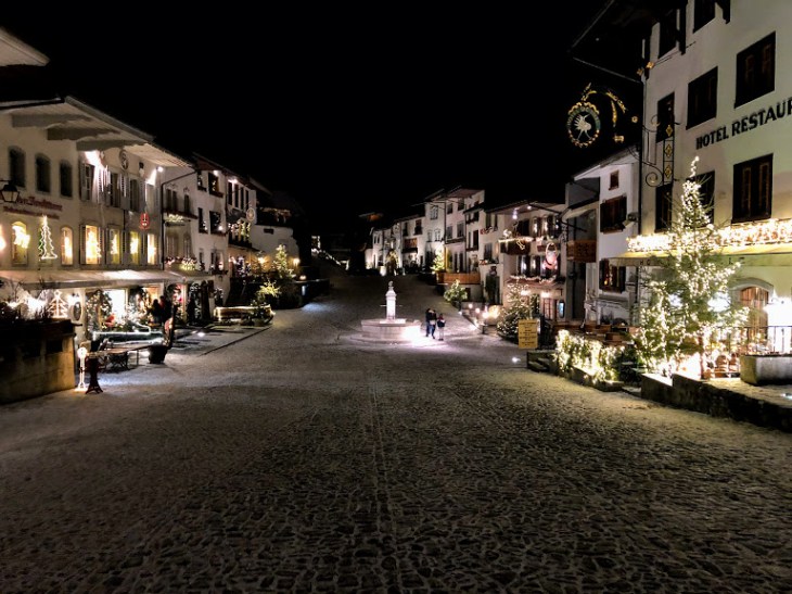 Nosotros nos quedamos en Hotel de Ville, y estaba muy bien. La ubicación inmejorable, en el centro de la calle principal, Rue du Bourg. El precio: 140 CHF la noche. Para darse un gusto y disfrutar de la magia de este pueblo de noche, está muy muy bien.
