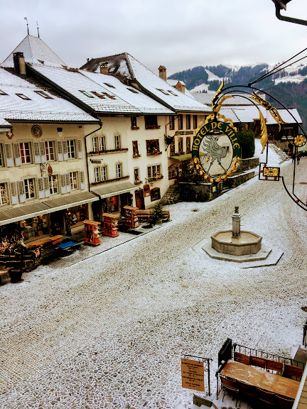 Particularmente creo que además, fuimos muy atinados con el momento en que fuimos: llegamos en la tarde, cuando los turistas comienzan a retirarse. Si lo recuerdan, nosotros visitamos Suiza los primeros días de enero, por lo que además se encontraba toda decorada de navidad, nevaba y por los parlantes que hay desperdigados por el pueblo se escuchaban villancicos y canciones de cine… el sentimiento que genera es como estar dentro de una película romántica… hasta le música! Creo que no estoy transmitiéndoles todo lo que nos hizo sentir este lugar, y no encuentro otras palabras, por lo que van a tener que vivirlo ustedes mismos!!