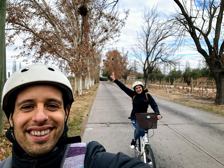 Nosotros alquilamos bicicletas en el inicio de la calle Ozamis, en el local Wine and ride. El alquiler de las bicicletas nos costó 400 pesos argentinos a cada uno por día, hasta las 18 hs. Lo cierto es que las bicis eran desastrosas, a la mía se le salió la cadena como 7 veces en el camino, hacía unos ruidos como para partirse en cualquier momento, y ninguna de las dos tenía cambios. Más allá de eso, amamos la experiencia de recorrer en bicicleta, nos divertimos mucho, y tuvimos la oportunidad de quemar todas las calorías que nos comimos en nuestro espectacular almuerzo.