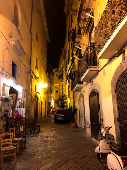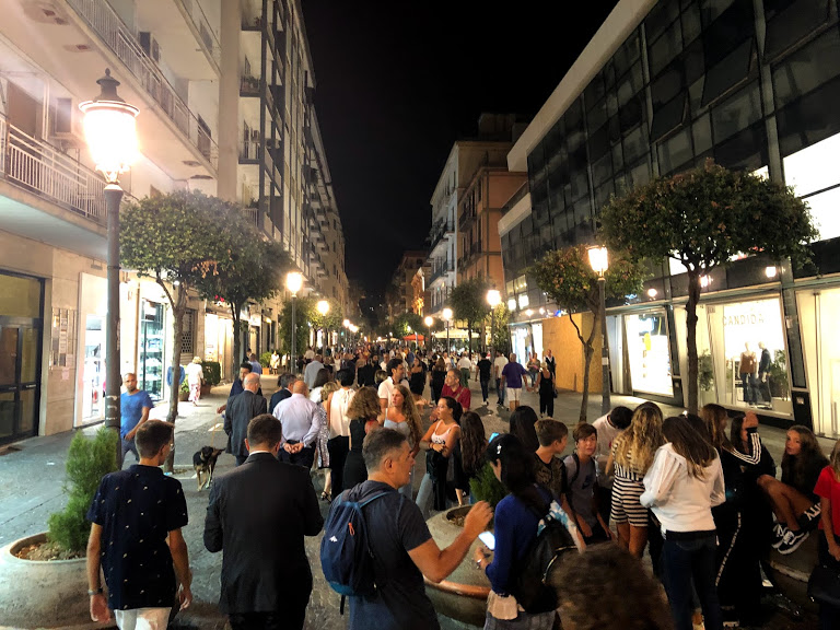 Con todo esto decidimos alojarnos en Salerno. La verdad mis expectativas eran muy bajas, pensé que iba a ser una ciudad sin encanto, y realmente me sorprendió. Está llena de vida, peatonales, callejuelas, centro histórico y lugares para comer. Tiene una rambla preciosa donde todos salen a caminar. Es una ciudad donde vive gente y no es solo para el turista, y eso me encanta.