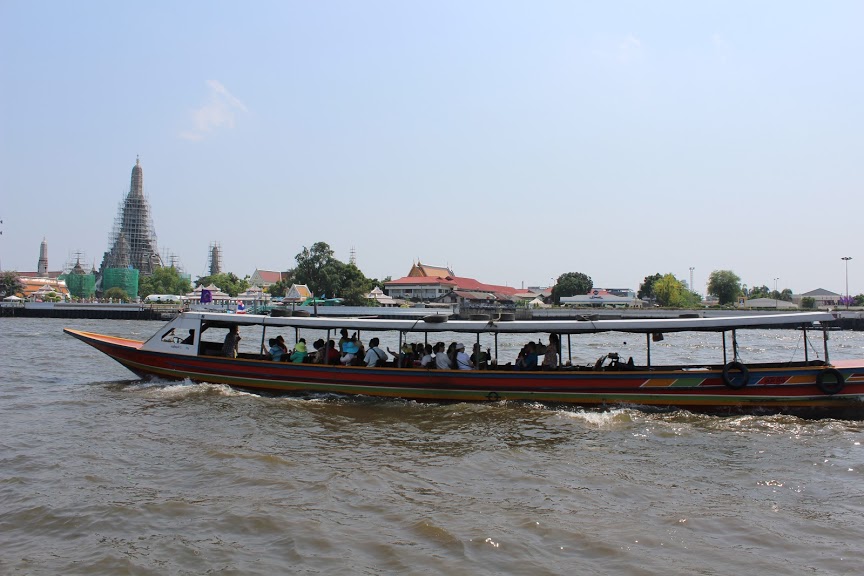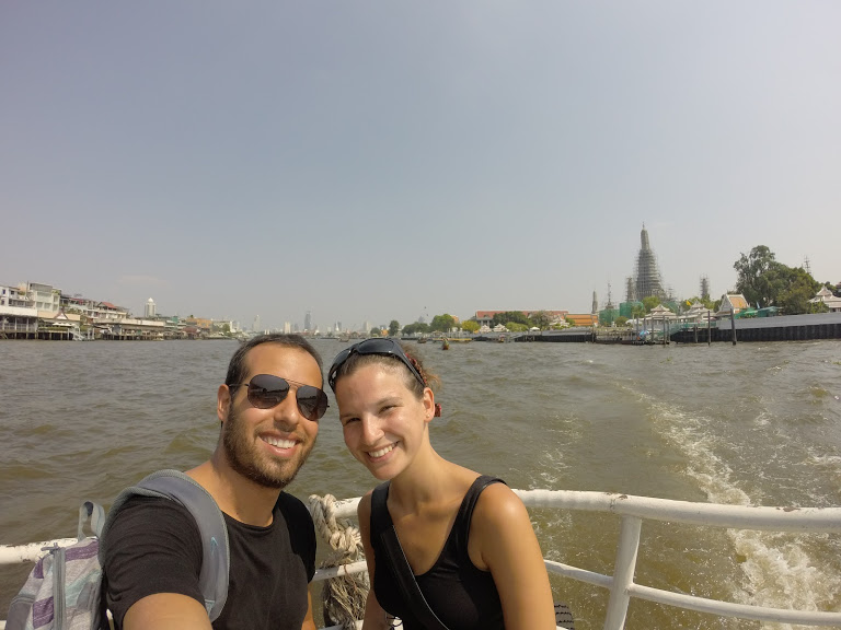 También usamos el transporte acuático a través del río Chao Phraya. En este caso el boleto sale menos de un dólar, y para cruzar hacia el otro lado en la misma estación, sale aún más barato. Se lo recomendamos porque además de rápido y económico, tendrán unas vistas espectaculares.