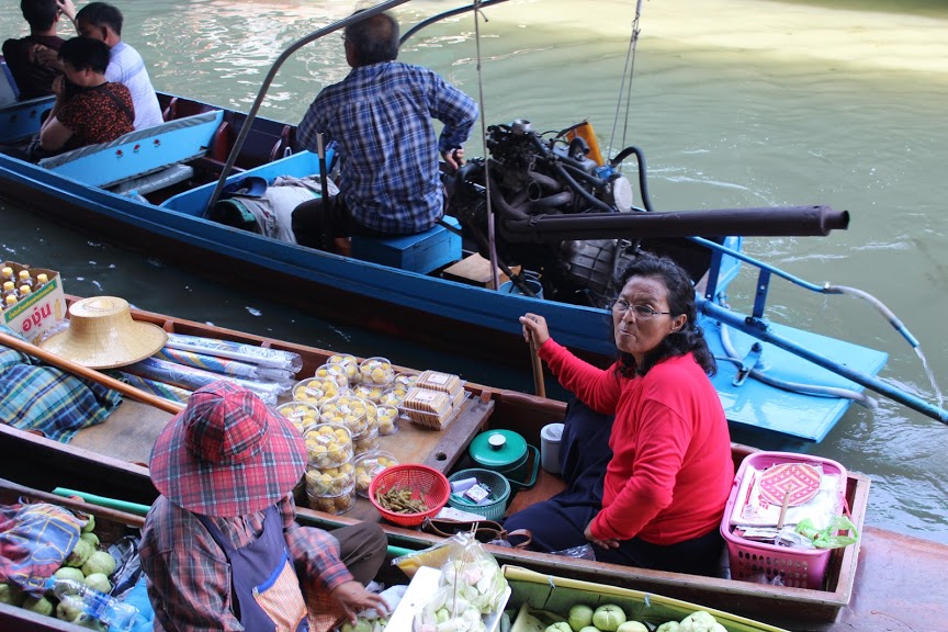 El mercado vende de todo: comida, frutas, ropa, adornos, recuerdos, etc. Uno lo recorre en una canoa, la cual los vendedores enganchan desde sus puestos para mostrarte su mercadería. Es realmente una experiencia bien diferente y divertida. Luego, el paseo también incluía una recorrida en lancha a motor por los canales, que atraviesa el pueblo donde vive la población. Súper especial ver la forma de vida tan diferente a la de uno.