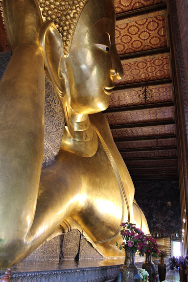 La imagen del buda reclinado mide 46 metros de largo, siendo la más grande de Tailandia. No perderse las inscripciones y símbolos de la planta de los pies, que miden nada menos que cinco metros de largo.