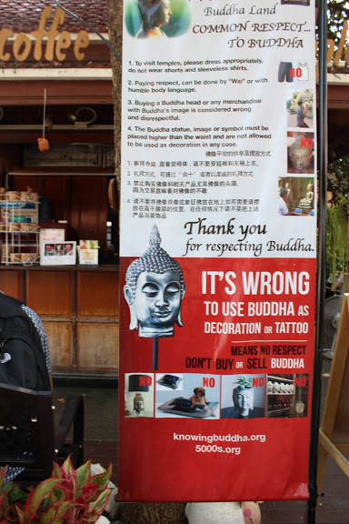 En occidente estamos acostumbrados a ver a Buda en sitios de decoración, adornos, etc. Para los budistas eso es una forma de falta de respeto, utilizar la imagen de Buda en adornos, tatuajes, remeras, etc.