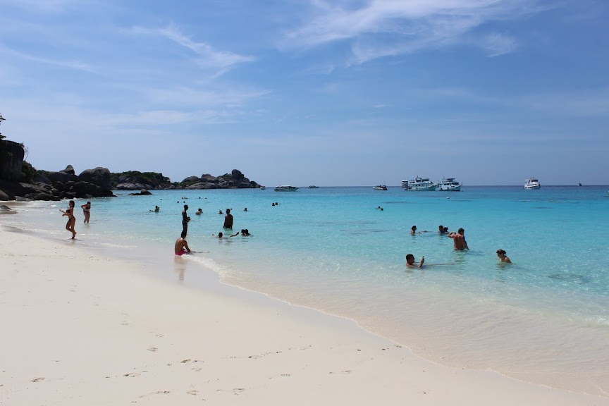 Otro paseo que hicimos desde Phuket fue al parque nacional Similan Islands. Aquí también había gente, pero bastante menos que en Phi Phi. Las playas son hermosísimas, y vale la pena hacerlo.