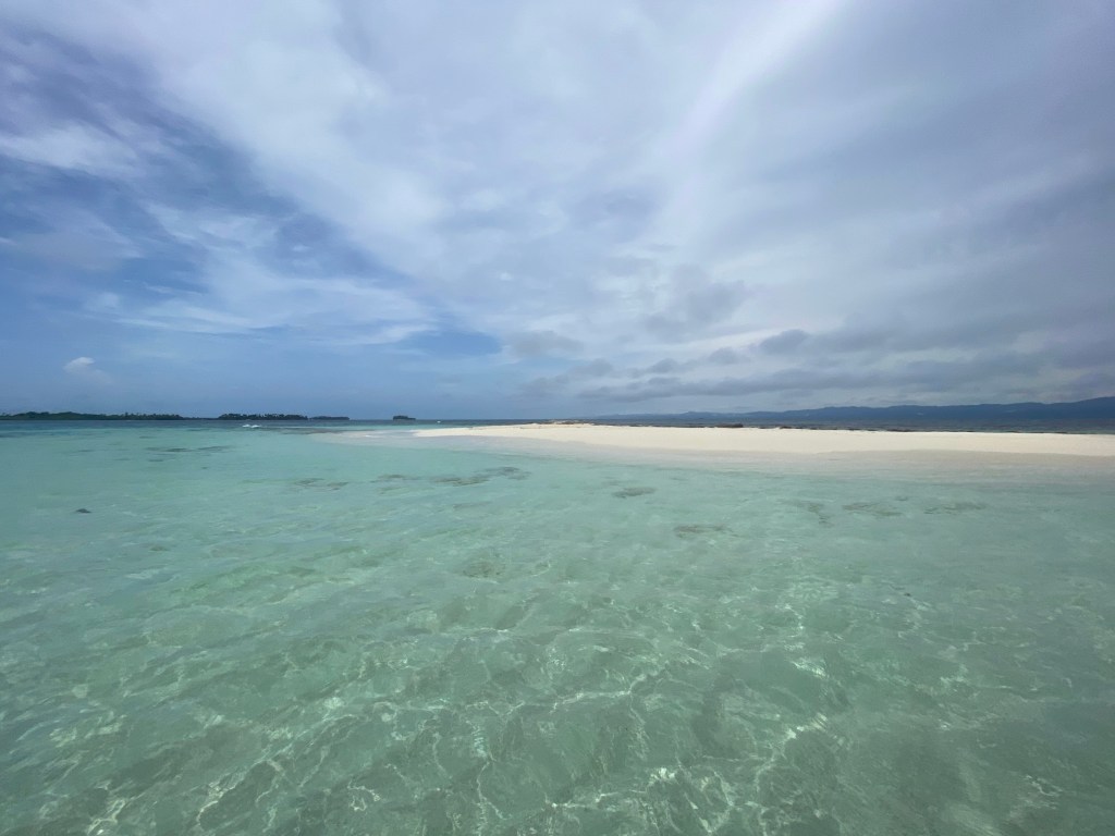 La playa de la isla Yani era bien llanita y linda, para quedarse sentados charlando en el agua mucho rato, nos gustó.