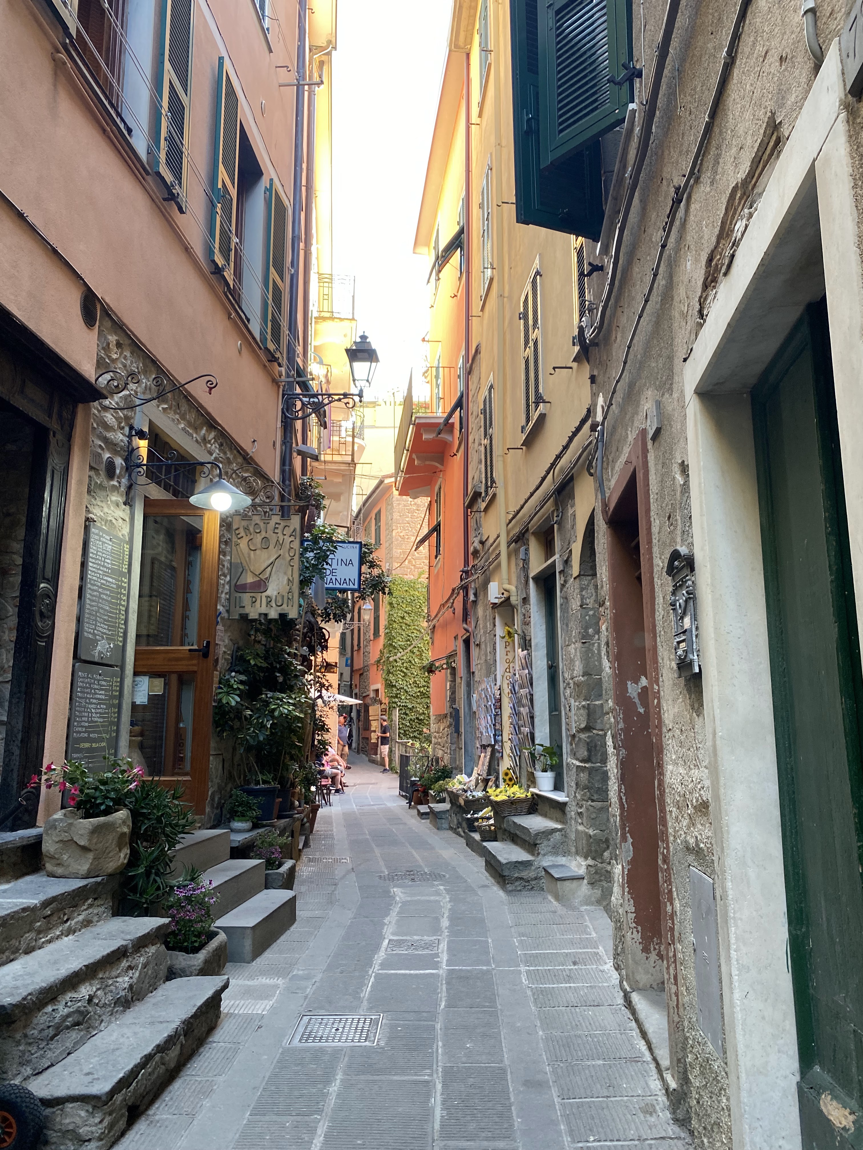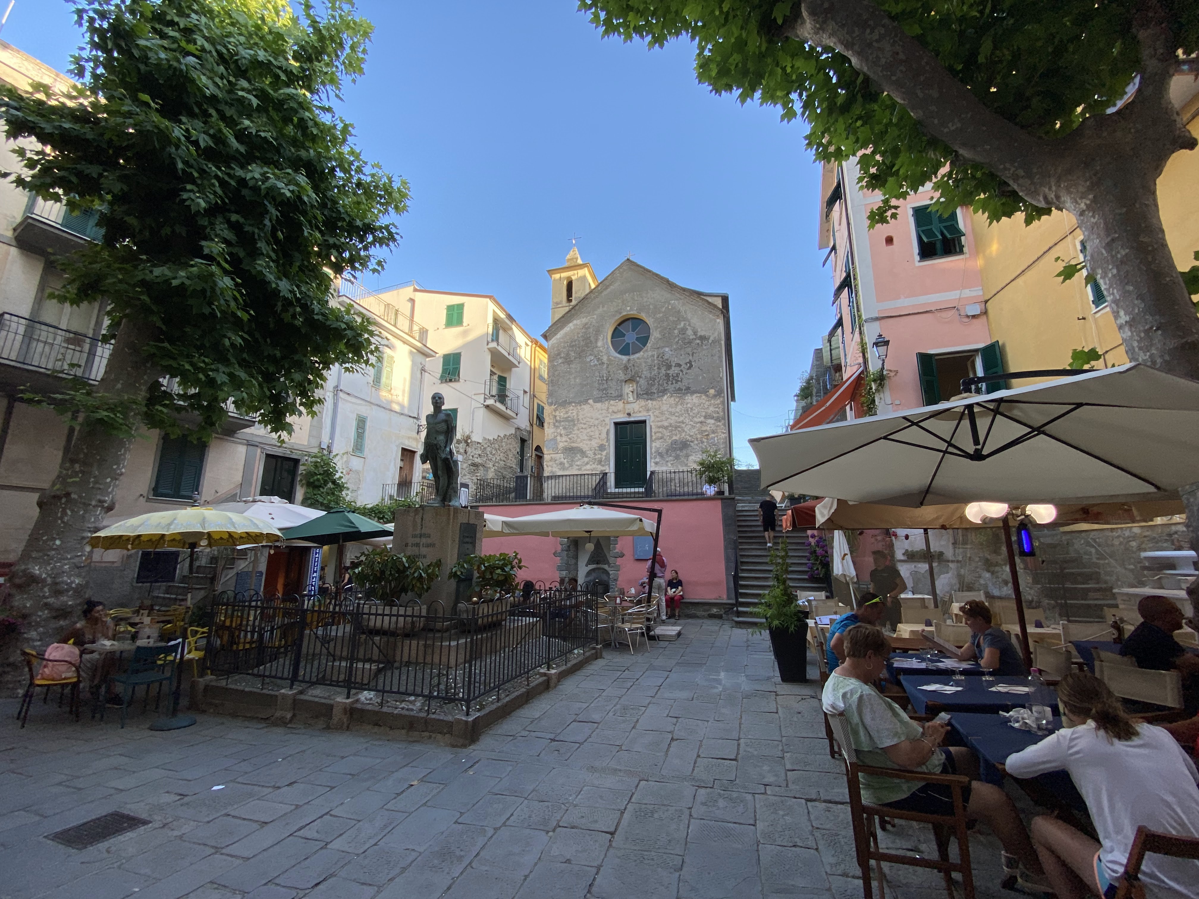 Voy a detenerme un momento a contarles de Corniglia. Nosotros nos quedamos en un hostel casi en la entrada de la Via Solferino, la peatonal que es el centro de Corniglia, de apenas unos 100 metros. Entrada la tarde, salimos a tomar algo. En la pequeña plaza del pueblo, estaban todos los vecinos, con sus hijos jugando a la pelota, la dueña de la pizzería charloteando con todos mientras atendía, el chico de nuestro hostel también en la plaza, tomando una cerveza con sus amigos. Eran todos una gran familia, y nosotros ahí, como visitantes invitados a esa rutina de la comunidad. Corniglia probablemente no es más bello que los otros pueblos, pero nos dejó esa sensación de bienestar, que será difícil que me la olvide.