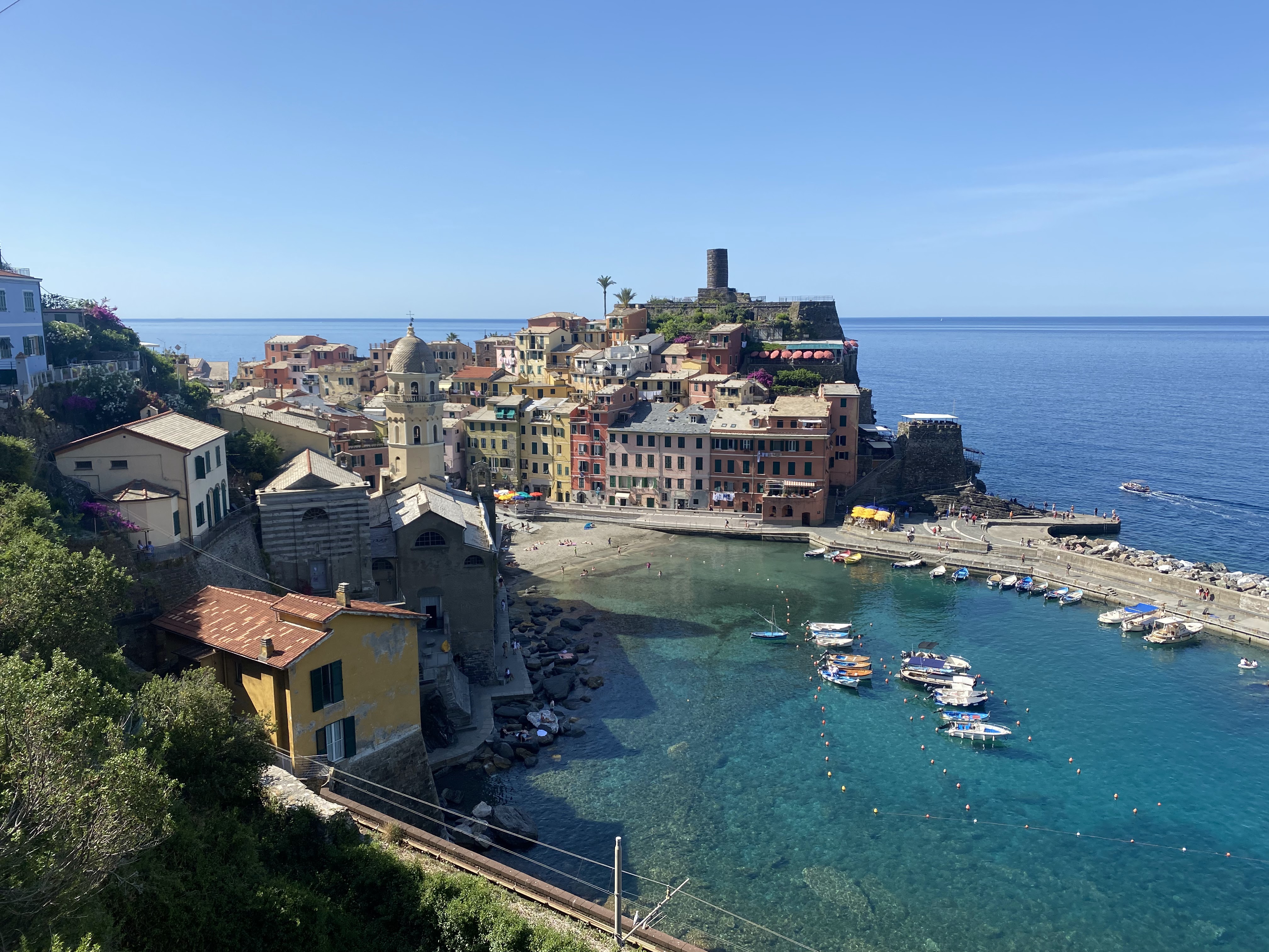Los cinco pueblos son Riomaggiore, Manarola, Corniglia, Vernazza y Moterosso. El que menos nos deslumbró fue el primero, Riomaggiore, pero lo bueno de esto es que al empezar por acá, uno va de menos a más, entonces nada decepciona. Manarola es probablemente el más conocido de los cinco, y es realmente precioso, pero también es el que está más lleno de gente. Corniglia es el más chiquito y auténtico, casualmente donde nos quedamos. Si vienen, quédense acá, porque apreciar la vida tranquila y sencilla de su gente, no tiene precio.