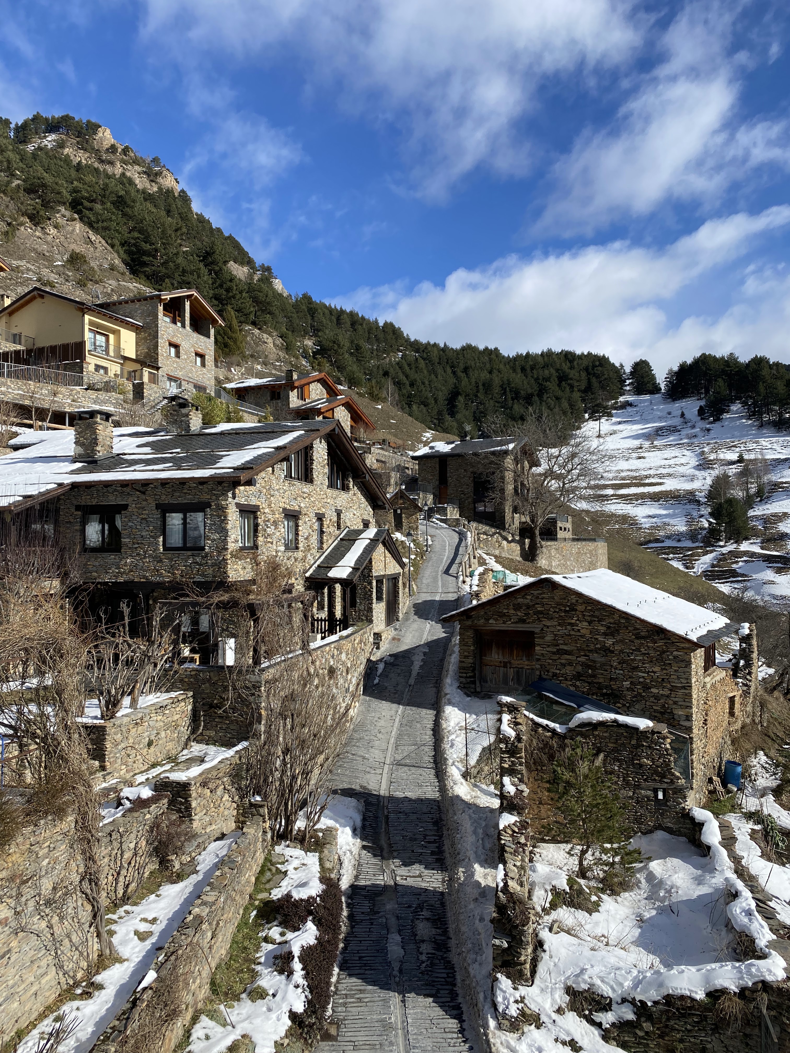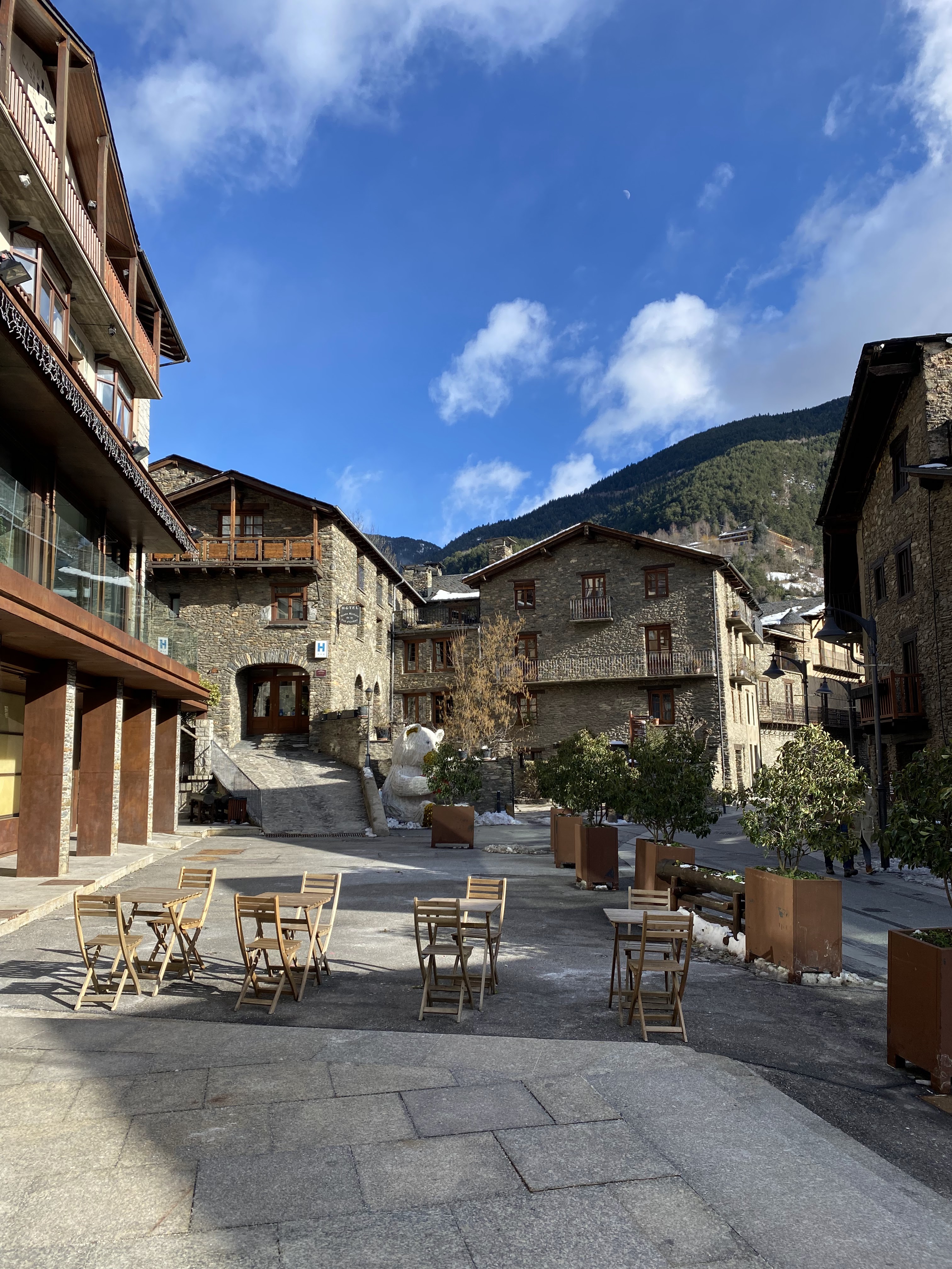 Montañas y esquí predominan, pero también las particularidades de este lugar. Andorra la Vieja no es nada parecido a lo que me imaginaba… es una ciudad con edificios no muy altos y calles intrincadas haciéndose su espacio en el pequeño valle. Tiene aire de pueblo de montaña con una especie de modernidad forzada, que no termina de fascinarme, porque me esperaba algo con más encanto. Sin embargo, los pueblos Pal y Ordino me dieron lo que me imaginaba, con sus casitas de piedra, el silencio y las montañas majestuosas.