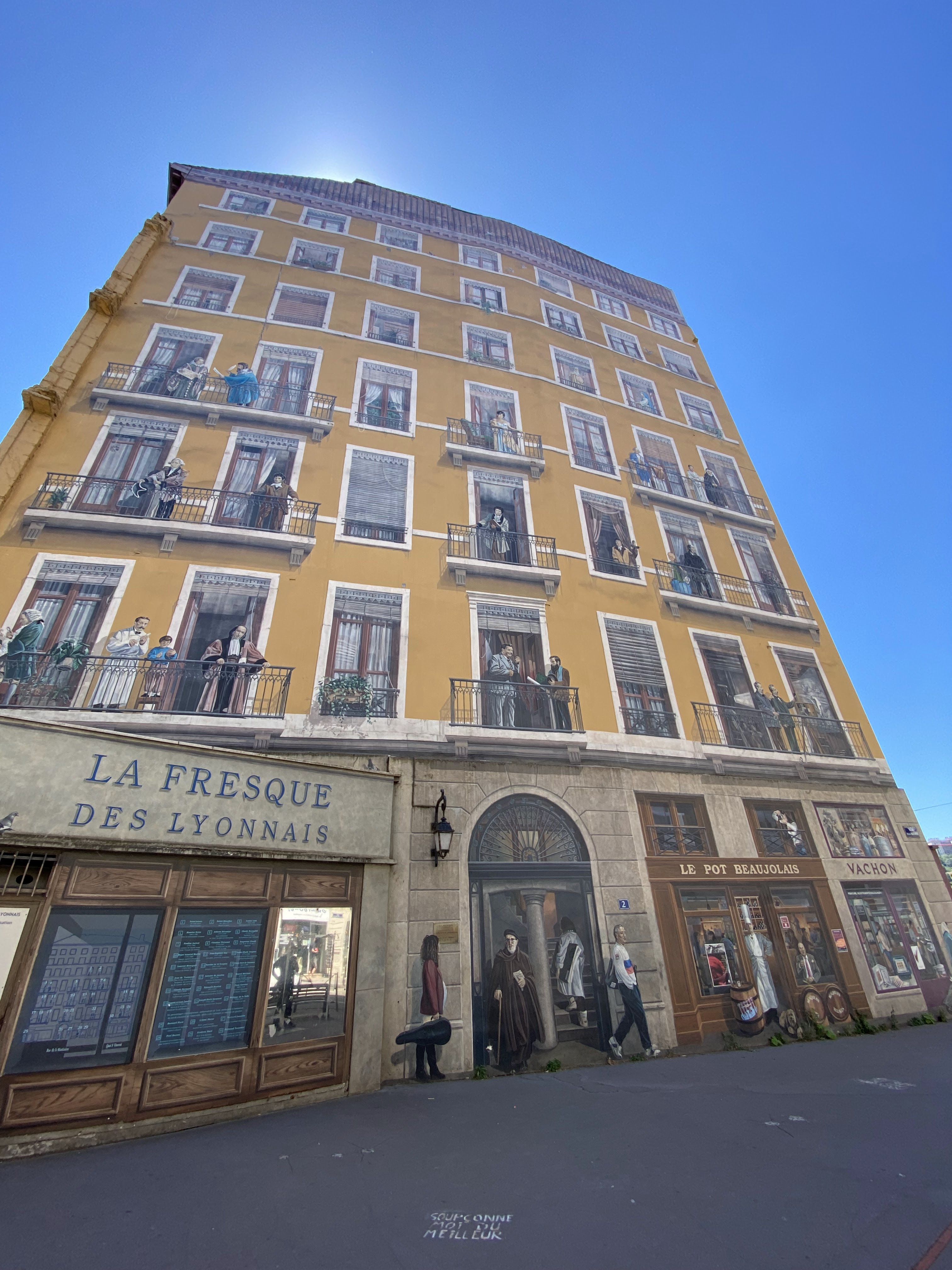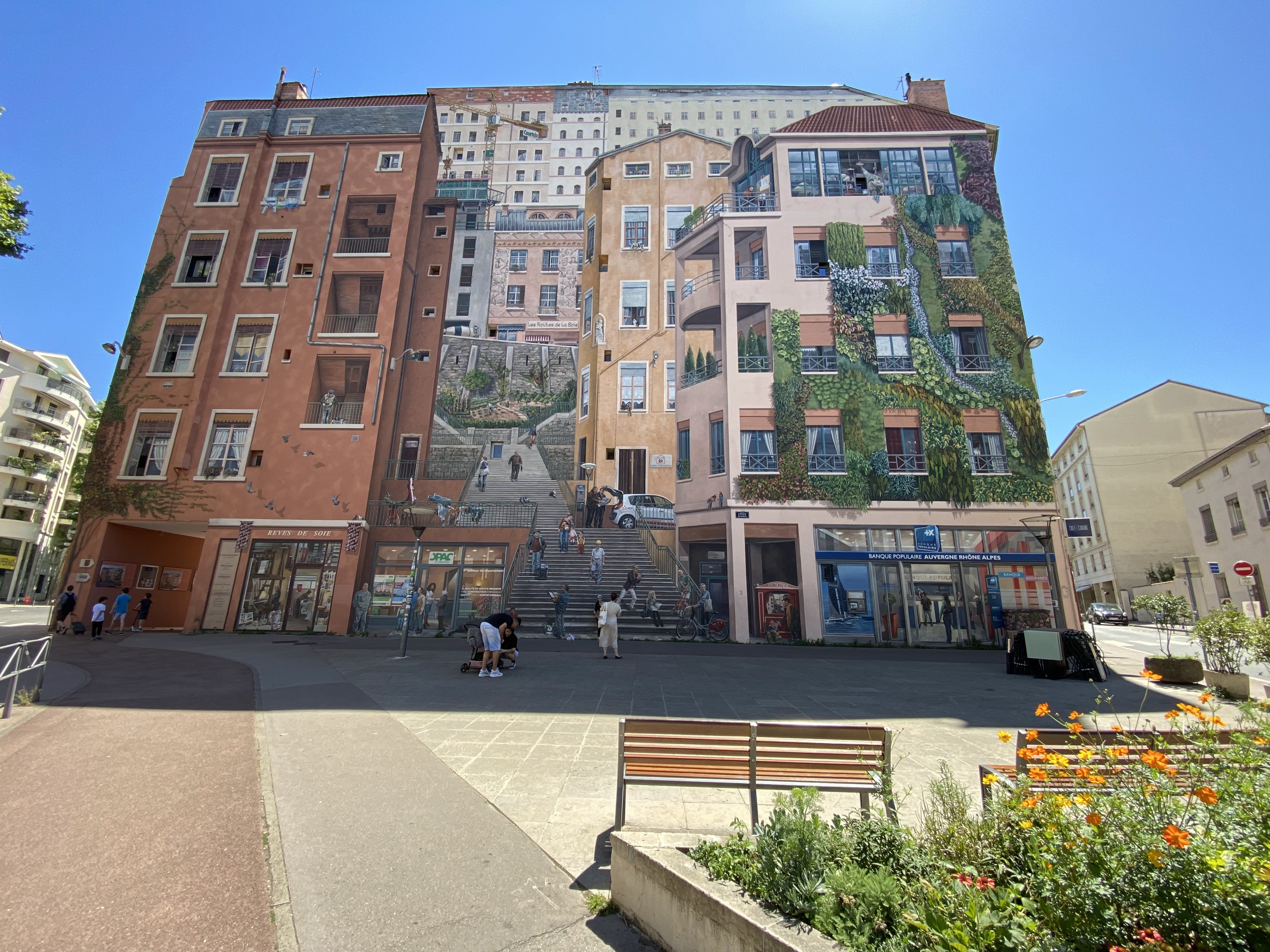 El mural des Lyonanais está dedicado a los 30 Lyoneses más famosos. Hay un cartel explicativo sobre la ubicación en el mural y la descripción de cada personaje. El Mur des Canuts, es el mural más grande de Europa, representando al barrio Croix-Rousse. La particularidad es que el mural se actualiza cada tanto, tiene vida 🙂