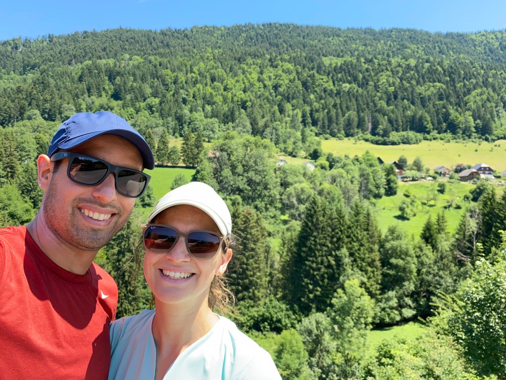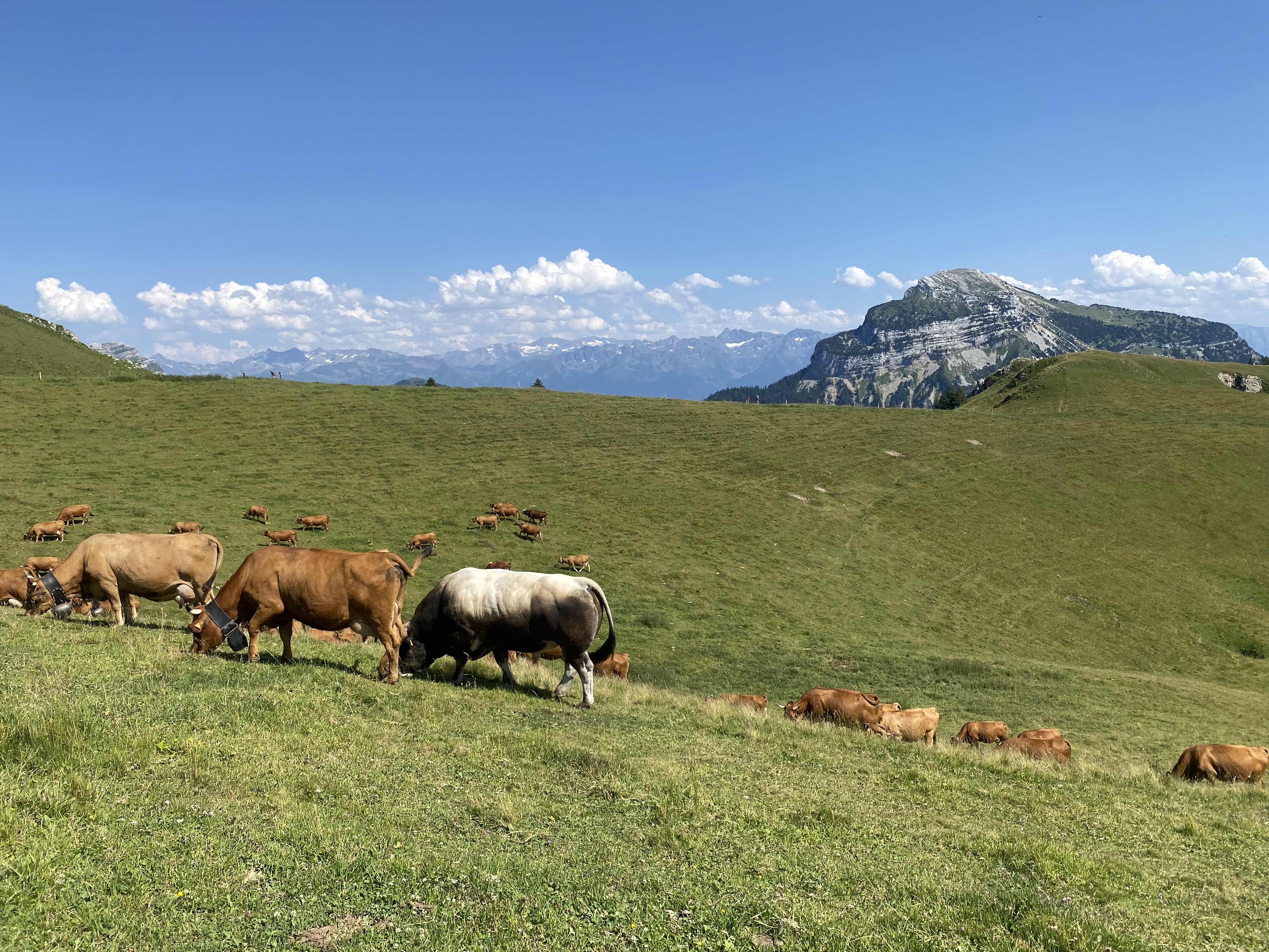 Luego fuimos a realizar otra caminata a Charmant Som, un poquito más exigente, pero aún sencilla. Las vistas eran preciosas, rodeados de montañas, prados y bosques, nos gustó mucho.