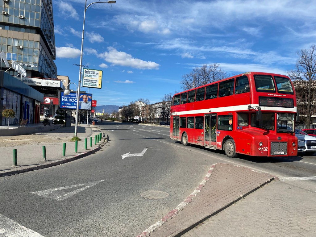Llegamos a la ciudad desde Sofía, en un bus de la compañía matpu. Les dejamos en el link la web de la empresa y los horarios. El bus demora aproximadamente 5 horas. Macedonia del Norte no pertenece a la Unión Europea, por lo que es fundamental llevar el pasaporte. El tiempo que demoramos en migraciones… no les puedo explicar. La revisión de los bolsos es manual, uno a uno, con todo detalle.