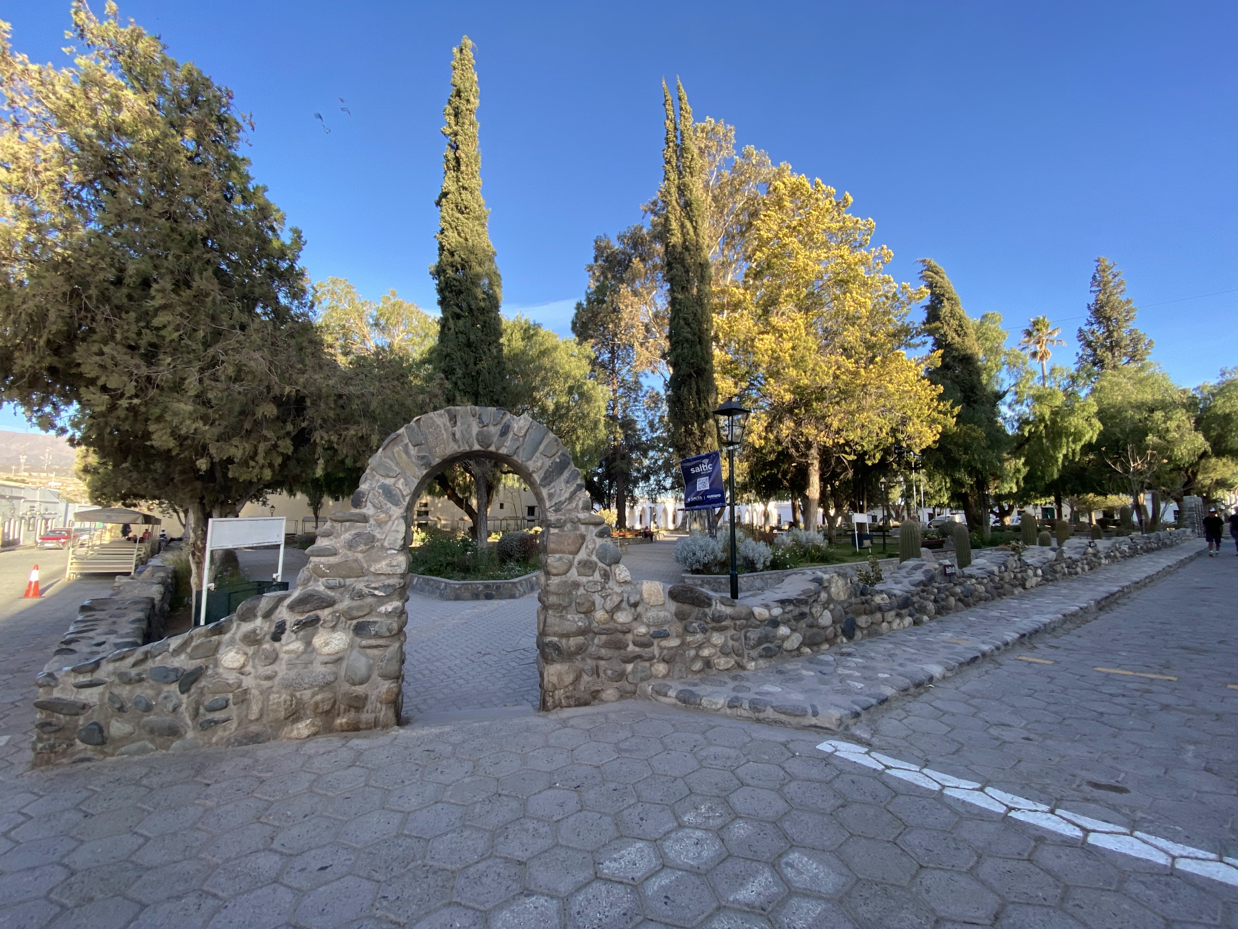 Cuando llegamos a Cachi visitamos la bodega Nueve Cumbres, que nos encantó. Queda justito al lado del pueblo. El pueblo es hermoso, súper pintoresco, con callecitas preciosas y una plaza llena de árboles.
