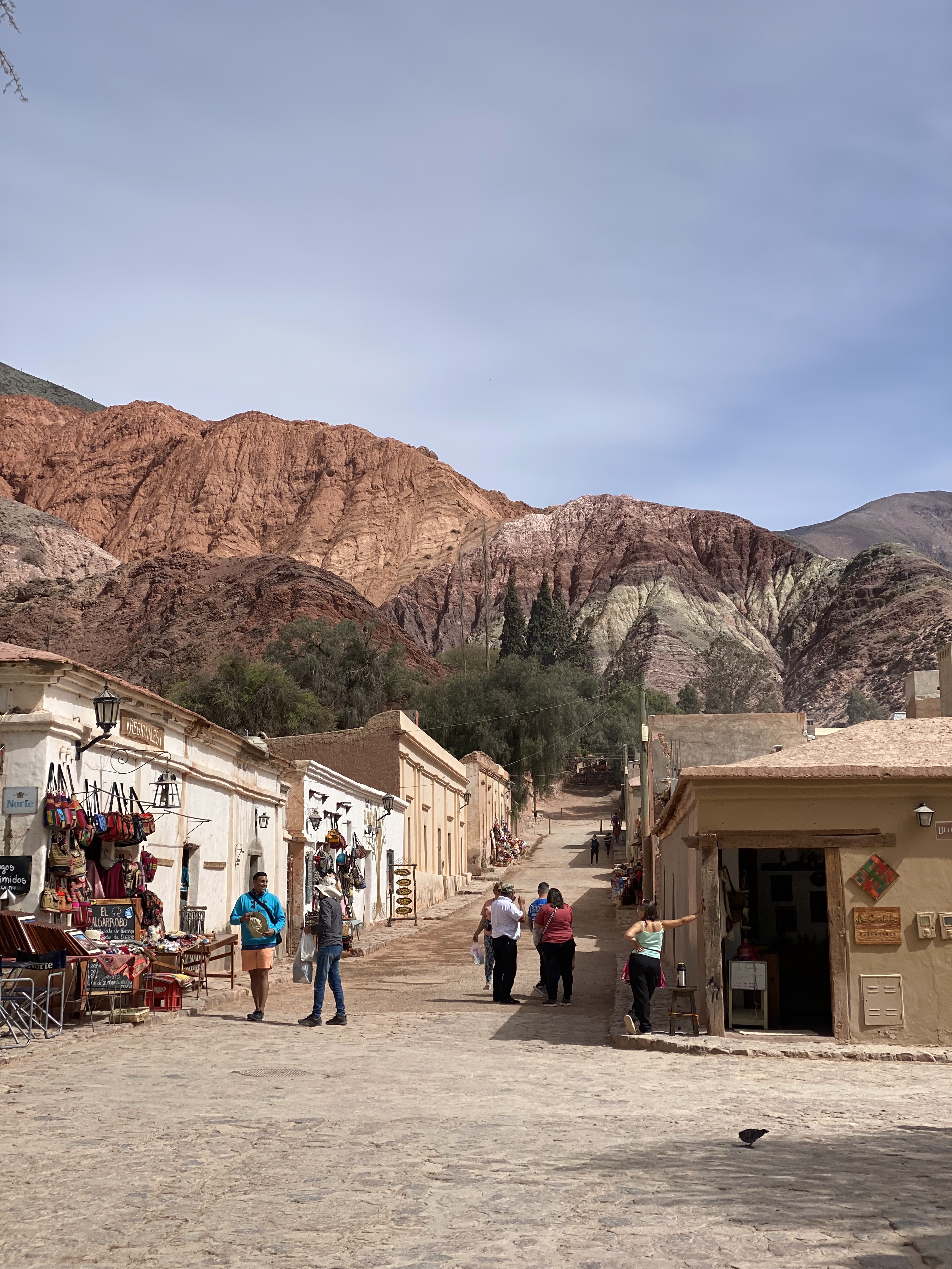Salimos camino a Purmamarca que nos pareció un mini pueblo muy lindo, rodeado de las montañas de colores. Hay un mirador de pago del Cerro de los Siete Colores, que no se si vale tanto la pena. Luego de comer, salimos a las Salinas Grandes. El camino nuevamente te va a dejar enamorado. Llegamos a la altura de 4170 m, una locura. Las Salinas también son hermosas. Es un paisaje muy particular, que invita mucho a la fotografía. El paseo se realiza en tu propio auto, pero siguiendo al guía, para ir por los lugares permitidos. El guía va a contarte sobre las comunidades locales, el trabajo en las salinas, y te va a hacer tremendas fotos.