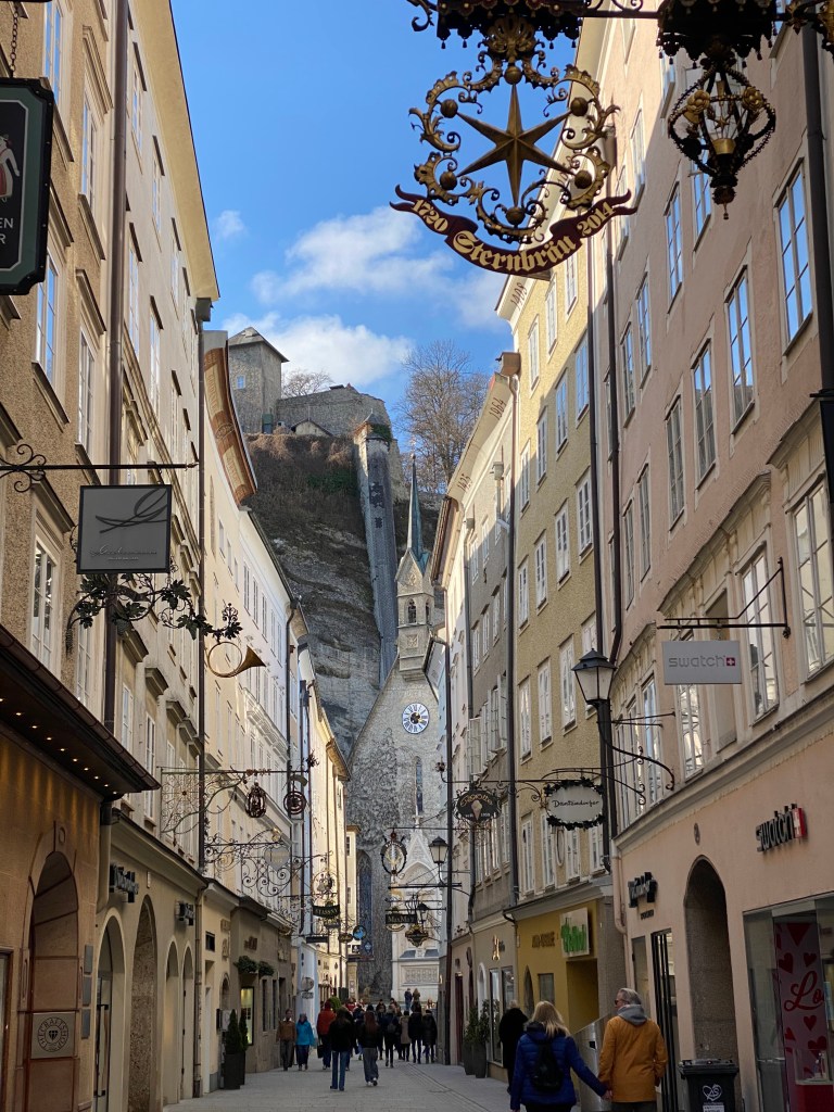 Cuando emprendimos la vuelta a Viena, pasamos por Salzburgo. La ciudad es famosa por ser la cuna de Mozart, lo que se refleja en su casa natal, museos y festivales dedicados al famoso compositor. También en las Mozart Balls, que son unos bombones de mazapán y pistacho y chocolate, que son los preferidos de Juan de todos los tiempos.