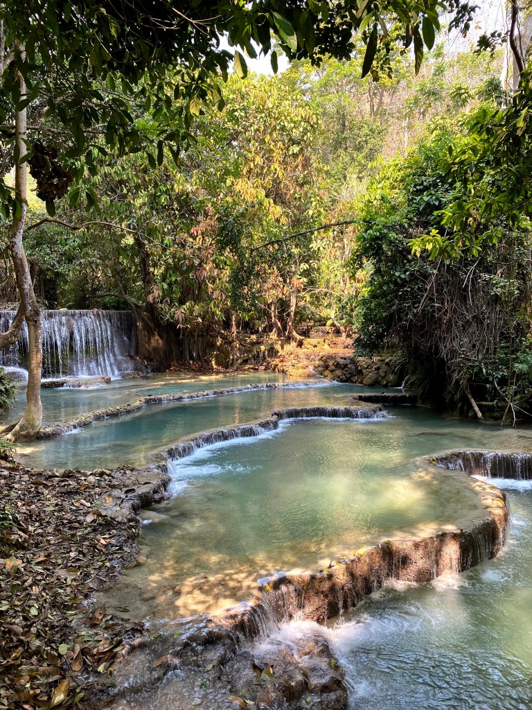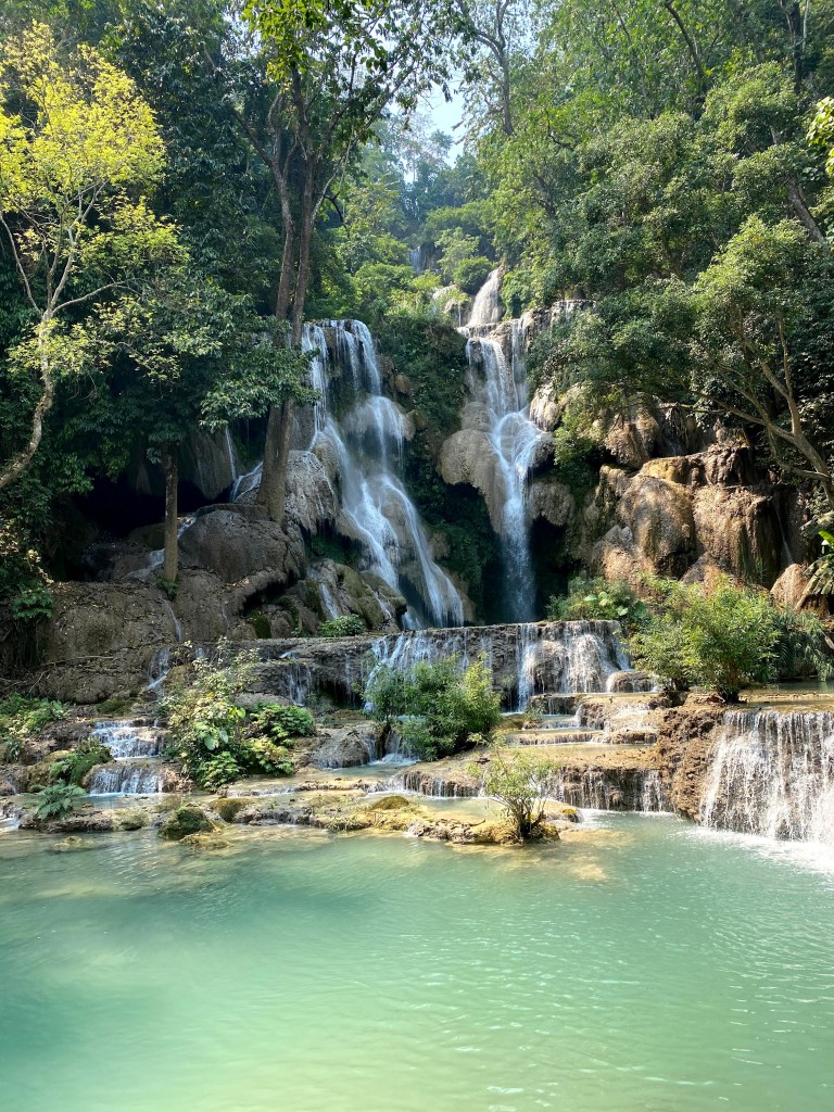 - Visita a las cascadas Kuang Si + Santuario de osos. A unos 30 km se encuentra este lugar que es precioso y realmente vale la pena visitar. Casi en el mismo predio está el santuario de osos. El Santuario rescata a osos de granjas ilegales donde son tenidos en cautiverio y en condiciones horribles para la extracción y venta de su bilis. Les dejo por acá el link para aprender más sobre el trabajo que se realiza aquí.